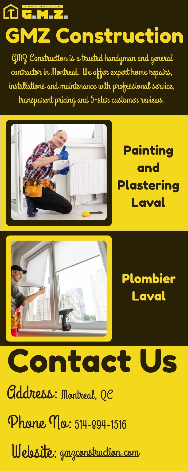 Vous recherchez un plombier de confiance à Laval ? Nous offrons des services de plomberie rapides et fiables pour les maisons et les entreprises, incluant la réparation de fuites, le débouchage de drains, l'installation de tuyauterie et les interventions d'urgence. Nos plombiers qualifiés vous garantissent un travail de qualité, des prix justes et une intervention rapide pour assurer le bon fonctionnement de votre système de plomberie. Visitez-nous: https://gmzconstruction.com/