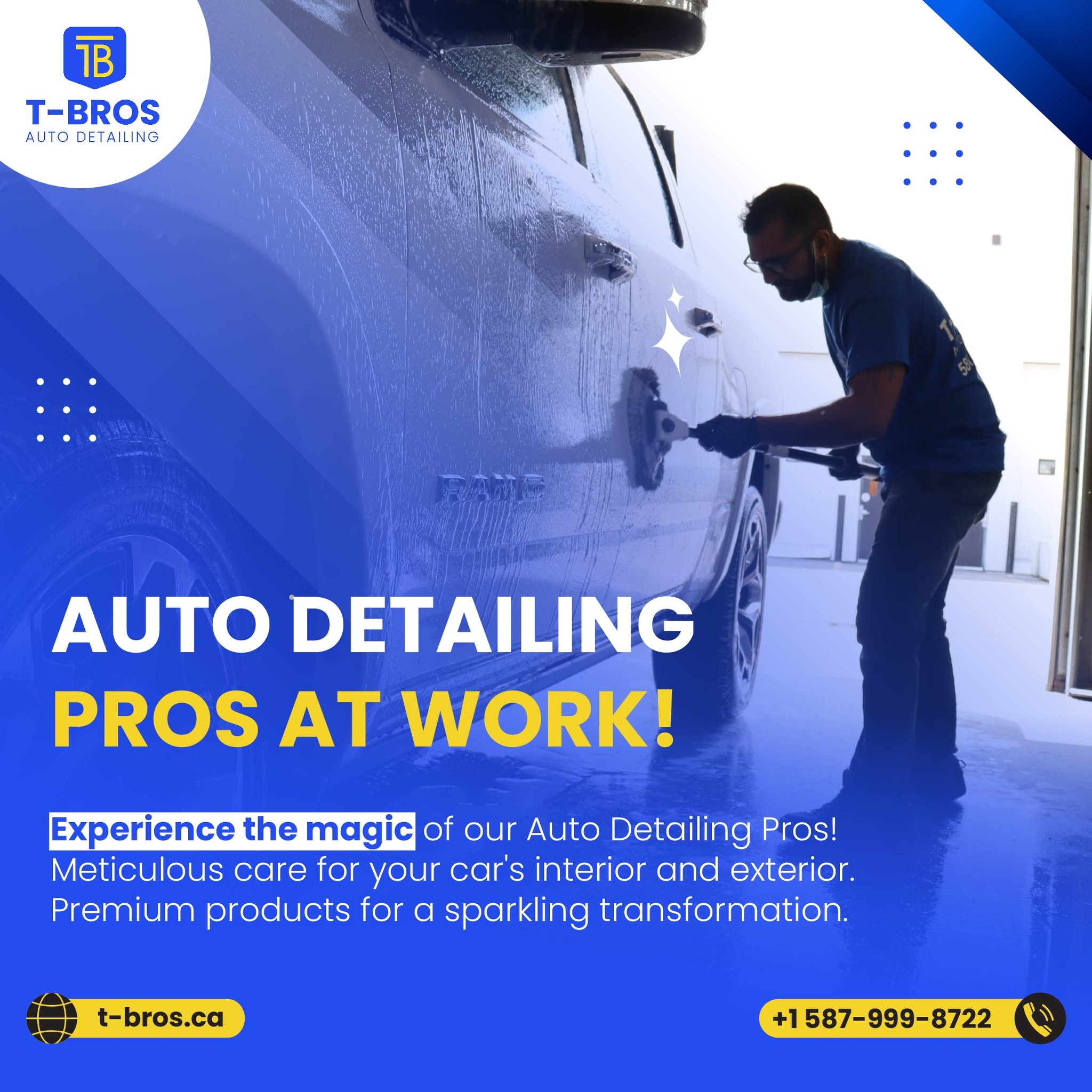 Elevate your vehicle's appearance with T-Bros Auto Detailing's premium car exterior detailing services in Calgary, AB. Our meticulous attention to detail ensures every inch of your car's exterior shines with brilliance, reflecting your unique personality and style. Contact us at +1 587-999-8722 to give your car the expert care it deserves and make heads turn on the road!
