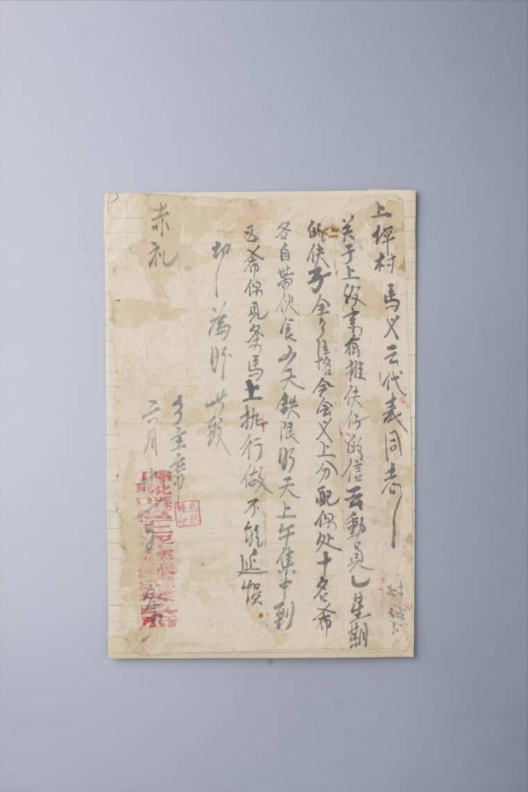 第二次国内革命战争时期宁化县丁坑口区上坪乡苏维埃政府给上坪村马义云同志的通知