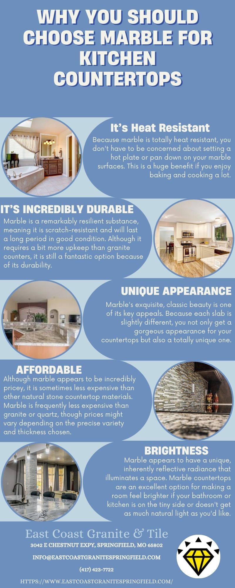 East Coast Granite & Tile is a fabricator and installer of granite, marble, and quartz countertops in Springfield, Missouri. Contact us now at: +14174237722.